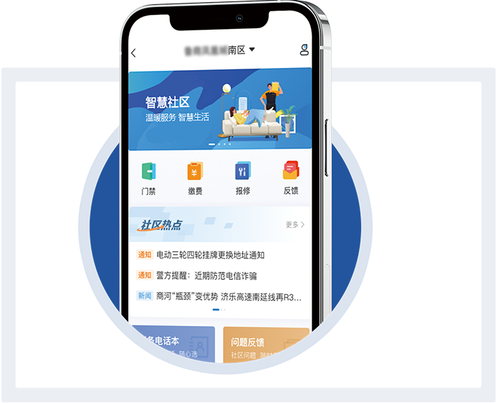 通知公告、智能门禁、生活缴费、社区问卷、服务电话本、家政服务、社区活动等。